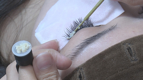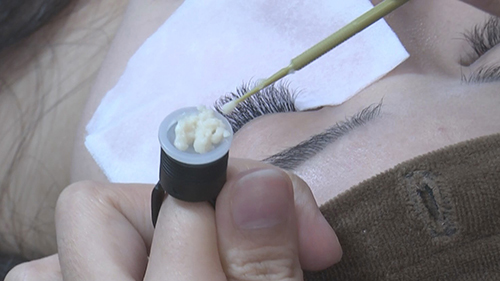 4)Wait 3-5 minutes. Use disposable micro applicator/ tweezers to push slightly inside out to remover false lashes